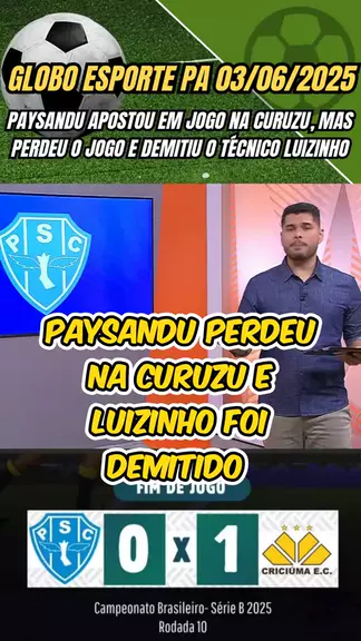 Globo Esporte PA 03/06/2025 paysandu apostou em jogo na curuzu, mas perdeu o jogo e demitiu o técnico luizinho Paysandu x Criciúma série B 2025 #SérieBNoKwai #SérieB2025 #BrasileirãoSérieB #PaysanduxCriciuma #esporteviral