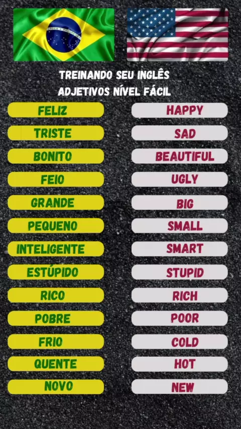 Treinando seu inglês Adjetivos nível fácil #educação #ingles #aprendaingles #idiomas #English