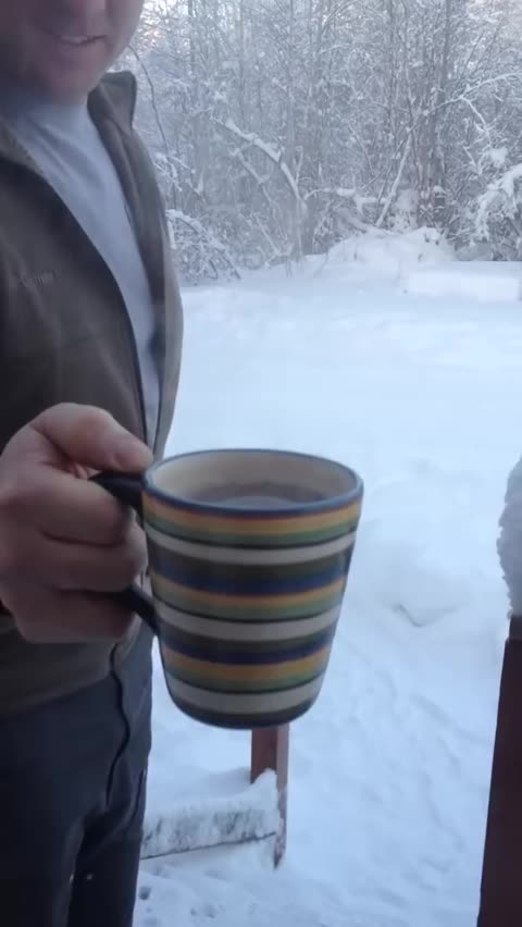 Café, jogado numa superfície de em -42C° instantaneamente se transforma em “Névoa de gelo” Alasca