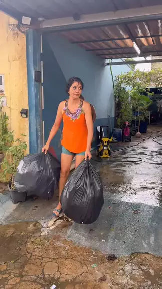 Olha a cara do marido 🤣🤣🤣 traz o lixo aí