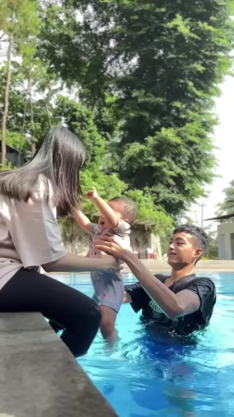 Yeayy gama berenang bareng papa๐๐#mahasuragama