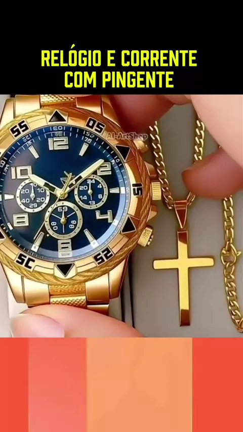 Relógio masculino e corrente com pingente #relogio #Diadospais #88DESCONTO #kwaishop #recomendacao