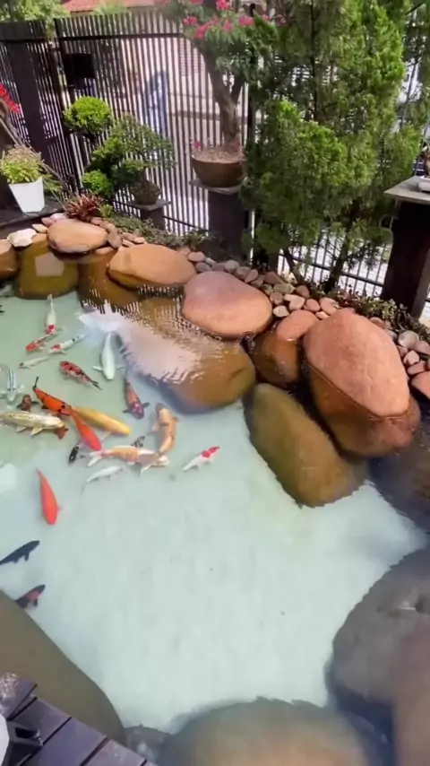 Quem não gostaria de ter um lago artificial em casa com água cristalina e carpas.😍 #facavocemesmo #paisagismo #Carpas #jardinagem