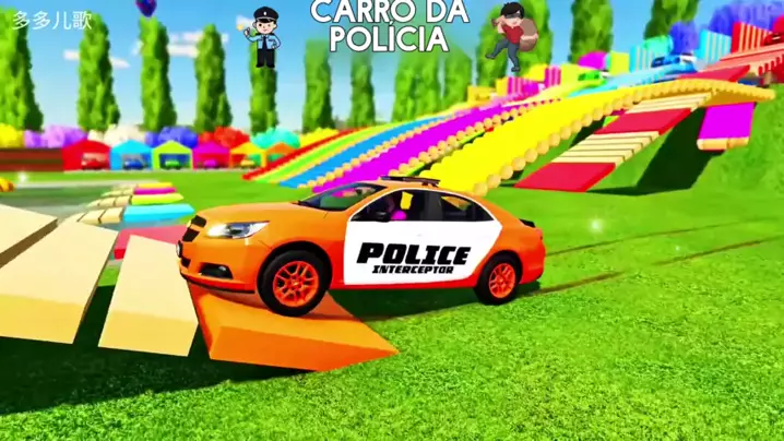 Carro de polícia dos desenhos animados do vídeo das crianças dos esportes