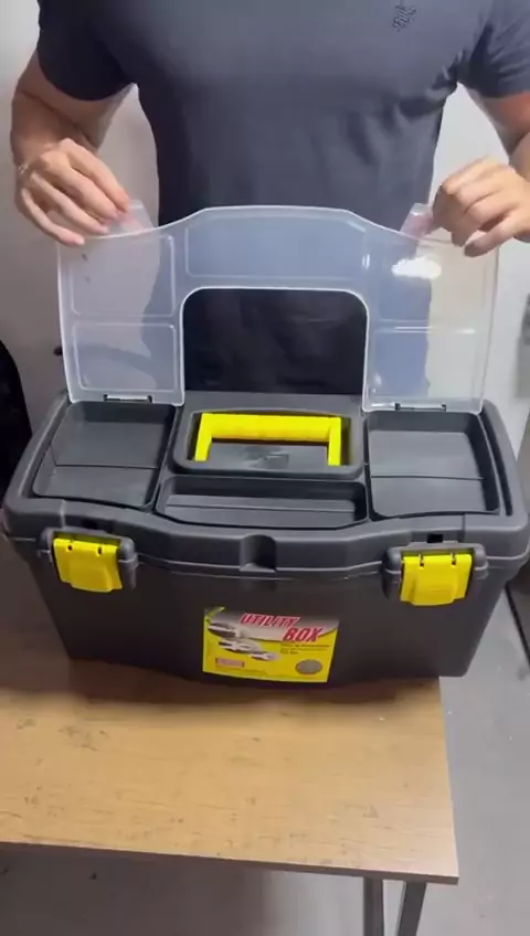 Caixa de Ferramentas Maleta Grande Reforçada Preta com Alça Caixa de ferramentas espaçosa e robusta, ideal para armazenar diversos tipos de ferramentas com segurança e organização. Conta com alça ergonômica, travas reforçadas e compartimentos superiores com tampa transparente para pequenos itens. Solução prática e durável para uso profissional ou doméstico. #casa #construção #ferramentas #viraliza #dicas