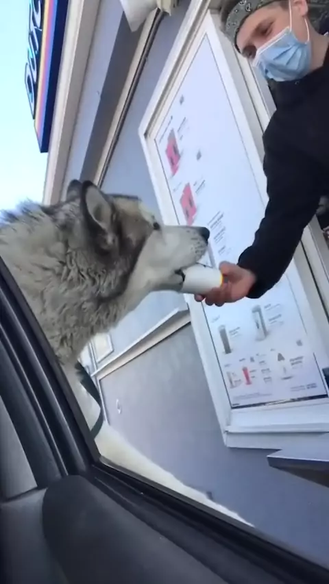 Husky orders his own puppucino ☕️ (@_nikos_world_) # # # #dogtok #dogsof #funny #husky