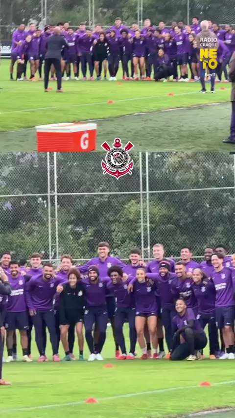 No treino aberto, no CT Dr. Joaquim Grava, os elencos masculino e feminino do Corinthians se encontraram e fizeram uma foto juntos - com muita resenha 😂 📹 @radiocraqueneto #Corinthians #SCCP #Timao #CorinthiansFeminino #TreinoAberto
