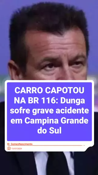 O ex-treinador da seleção brasileira Dunga, sofreu um gr4ve acidente na tarde deste sábado,13, em Campina Grande do Sul, região metropolitana de Curitiba. O carro que ele pilotava, uma Pajero, capotou na BR 116. Dunga estava com a esposa Evanir. Os dois foram levados para um hospital com ferimentos leves. Nasceram de novo. #Ultra10kvis #EstrelaDeFamília #MelhorVideo #dunga #acidente