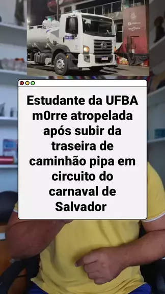 Uma estudante da UFBA, de 24 anos, m0rreu nesta segunda-feira, dia 16, após subir na traseira de uma caminhão pipa, durante serviço de limpeza no circuito do carnaval de Salvador. A jovem foi atropelada e teve o corpo esm*gado. #KwaiNotícia #news #carnaval