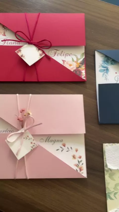Convites de casamento com várias cores e tipos de papéis especiais. Um luxo de lindeza💕💒