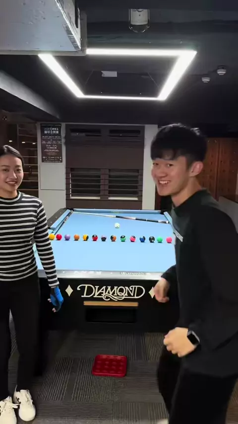 Chiang(水水) X Tang(小唐) 唐:欸要不要來打個雙打球型,但我現在是無桿選手! 水:??? 好啊⋯我的桿借你🤣🤣 (但我需要先偷練一下🤫 (13 14 號真的很容易搞砸🤦🏻♂️#poolplayer#nineball#billiards#9ball#8ball#pool#撞球#🎱 @江水淨