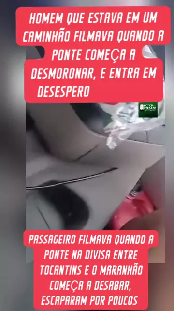 HOMEM QUE ESTAVA EM UM CAMINHÃO FILMAVA A TRAVESSIA NA PONTE NA DIVISA ENTRE TOCANTINS E MARANHÃO QUANDO A PONTE COMEÇA DESABAR. #Notícia #Ponte #Maranhão
