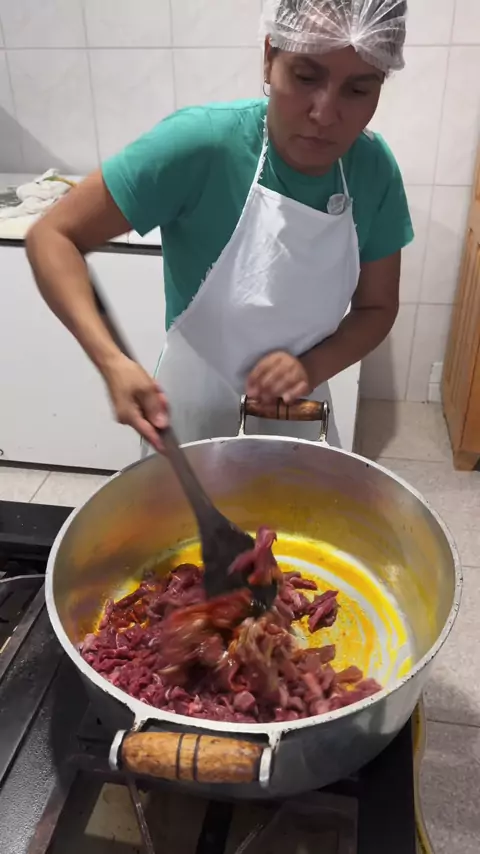 cardápio do dia foi arroz de açafrão com tiras de carne com creme de abóbora #merendaescolar #cardapio