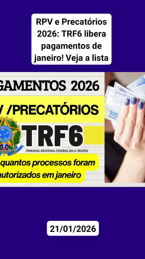 RPV e Precatórios 2026: TRF6 libera pagamentos de janeiro! Veja a lista #noticias #ultimasnoticias #fy