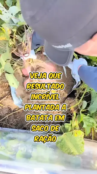 olha o resultado legal que teve plantando batata doce em saco de ração #dica #variedade #criatividade