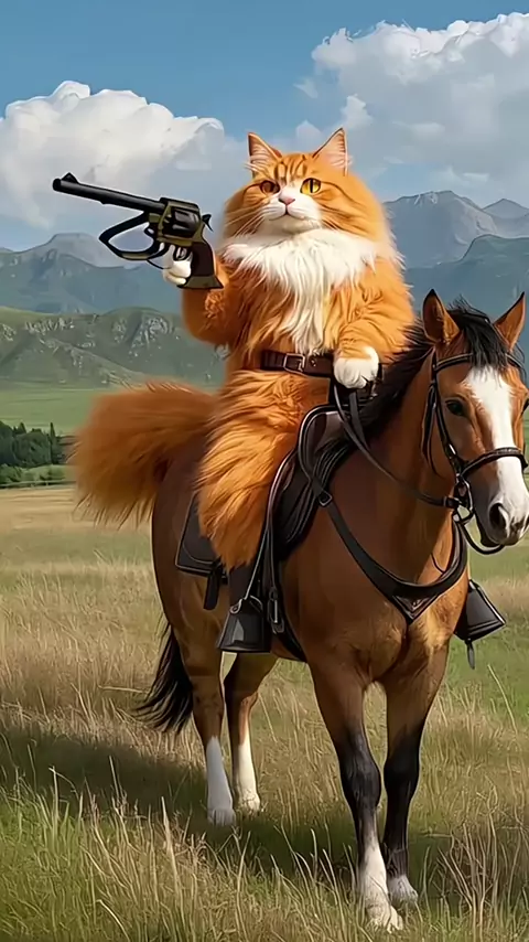 The cat is on top of its horse, hunting the wild boar. ##### #cat #horse #hunting #wildboar #adventure