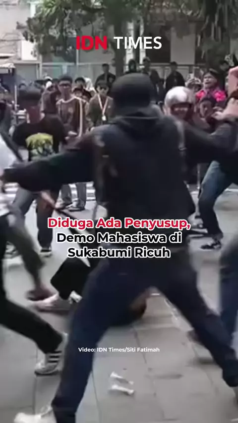 DIDUGA ADA PENYUSUP, DEMO MAHASISWA DI SUKABUMI RICUH Kota Sukabumi, IDN Times - Aksi ribuan mahasiswa yang menggelar demonstrasi di depan Gedung DPRD Kota Sukabumi pada Senin (1/9/2025) sore berubah ricuh. Awalnya massa hanya berorasi, namun situasi mendadak panas hingga berujung bentrokan dengan aparat. Dari pantauan di lapangan, kericuhan bermula ketika mahasiswa hendak bergerak menuju kawasan Tugu Adipura. Tiba-tiba, dari arah utara muncul sekelompok orang tak dikenal yang melempar botol, k...