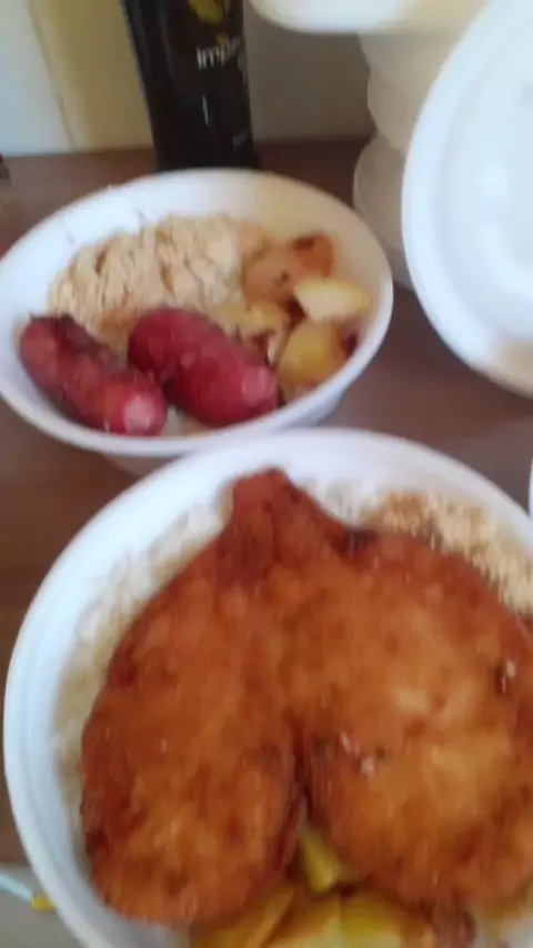 #Quentinha da ana. venham saborear..uma linguiça assada..e frango empanado 👩🍳