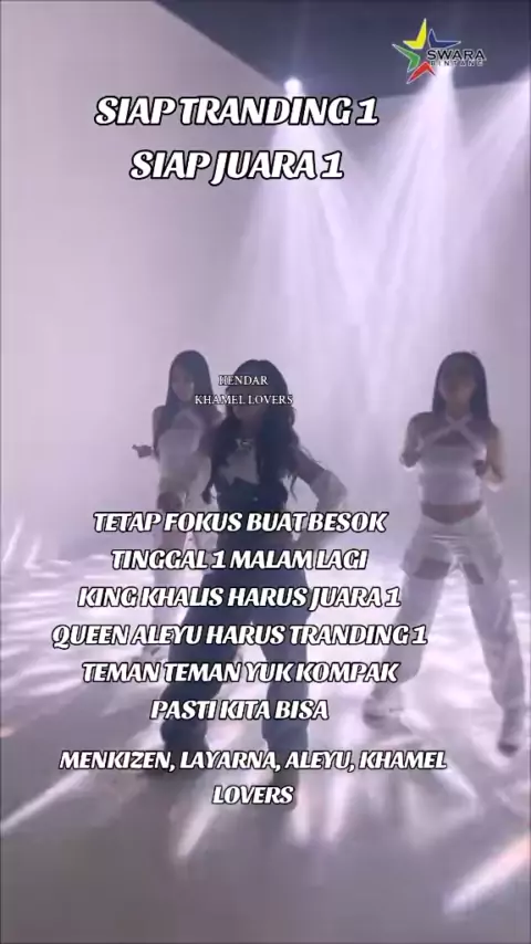 PASTI BISA YUK TEMAN TEMAN QUEEN ALEYU TRANDING 1 KING KHALIS JUARA 1 #lyiatemanrasapacar #lyiatm #swarabintang #swarabintangrecords #swarabintangtalent :SWARA BINTANG SPOTIFY:LYIA IG:lyia_tm #amelia #khalis #aleyuuuuuuuuuuš #khamellovers @Amelia Gusnia @khalissetiawan27 @Teungkuboy @PUJI KURNIAWAN @fauzicarinterior887 @wina.dp @faiz_shahab.28 @nadiaulfa3777 @ayahaisyah5