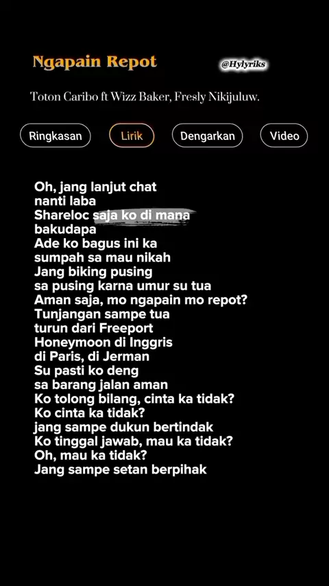 Lirik Lagu ngapain repot- Toton Caribo Part 561 ๐ถ #lyrics #liriklagu #lagutimur #viral #ngapainrepot