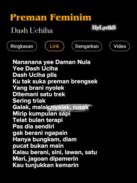 Lirik Lagu Preman Feminim-Dash Uchiha Part 382 🎶 #lyrics #liriklagu #lirikgoogle #lagukane #laguold #lagu #trending #laguviral #old #premanfeminim #dashuchiha