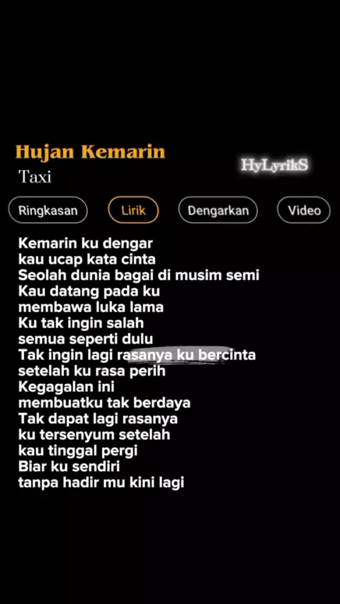 Lirik Lagu Hujan Kemarin-Taxi Part 158 ๐ถ #lirik #liriklagu #lirikbaper #lagu #lagusad #lagukaraoke #musicvideo #musicviral #song #galaubrutal #hylyriks #hujankemarin #taxi