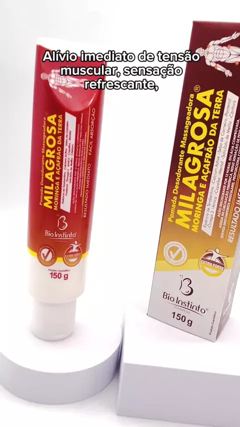 Pomada Milagrosa – Bio Instinto Pomada desodorante e massageadora com ação multifuncional. Alívio imediato de tensão muscular, sensação refrescante, hidratação intensa e suavização de asperezas (pés, mãos, calcanhares). Contém ativos naturais como mentol, cânfora, arnica, salicilato de metila, moringa e açafrão-da-terra. Uso externo — aplicar com massagem até absorção. Suspender uso em caso de irritação. #fy #pomada #KwaiBrasil #kwaiviral