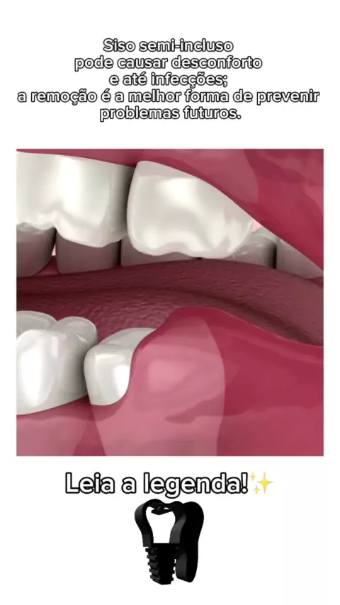 🦷 Siso semi-incluso: atenção aos sinais! 🦷 O siso semi-incluso pode causar dor, inchaço, infecções e até desalinhamento dos dentes. A remoção preventiva é a melhor forma de evitar complicações e garantir a saúde do seu sorriso! Consulte seu dentista e cuide do seu bem-estar. 😊✨ #SisoSemiIncluso #SaúdeBucal #prevenção #Saúde #fy