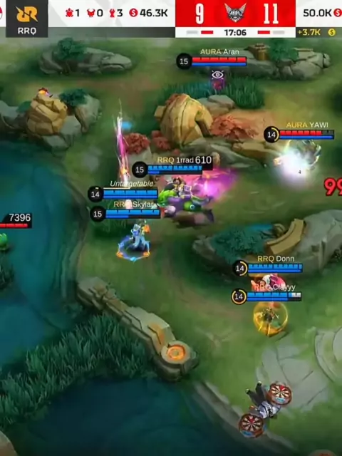 Teamfight menegangkan RRQ Hoshi vs Aura Fire (Game 3)#mlbbxoro#weownthis#mplseason13#vivarrq#