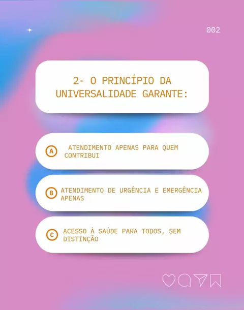 🩺 Você realmente conhece o SUS? ⠀ Muita gente usa, mas poucos sabem como funciona de verdade! ⠀ 💡 Teste seus conhecimentos sobre a história, os princípios, os programas e a organização do Sistema Único de Saúde — e descubra se você é quase um sanitarista ou se precisa rever a Lei 8.080 rapidinho! 😂 ⠀ 📲 Comenta quantas você acertou e marca aquele amigo que precisa aprender isso pra ontem! ⠀ #QuizSUS #SaúdePública #SistemaÚnicoDeSaúde #EstudantesDeSaúde #Lei8080 #