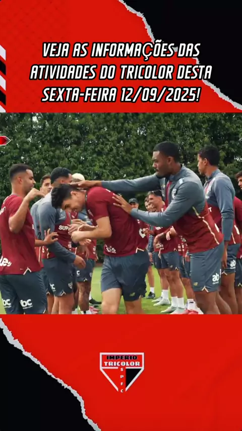 Veja as informações das atividades do Tricolor desta sexta-feira 12/09/2025! #Treino #saopaulofc #brasileirão2025 #Foco #Botafogo