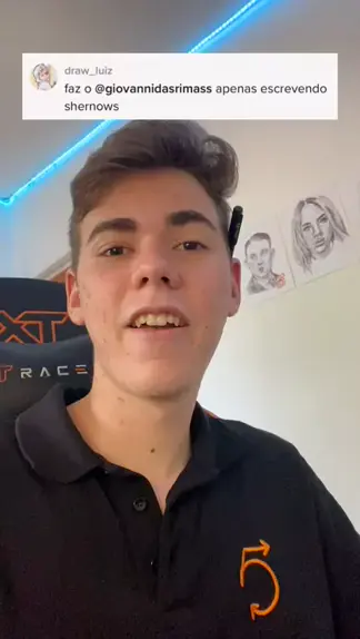 Desenhando o @giovannidasrimass escrevendo “Shernows” KKKKKK #Desenhos #arte #5Fanatic #memesdobr #desafio