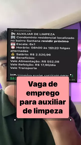 Vaga de emprego de auxiliar de limpeza