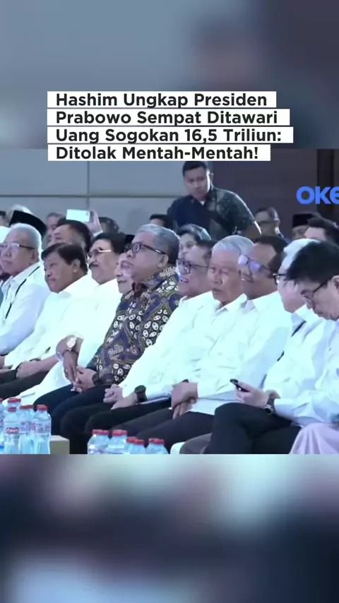 Hashim Djojohadikusumo, mengungkapkan adanya pihak yang berani mencoba menyuap Presiden Prabowo Subianto dengan tawaran mencapai 1 miliar dolar AS atau sekitar Rp16,5 triliun. Tawaran itu langsung ditolak dengan keras oleh Pak Prabowo. Hashim, yang juga merupakan adik kandung Presiden, menceritakan bahwa beberapa bulan lalu dirinya dihubungi langsung oleh Prabowo melalui sambungan telepon. Ia tidak menyebutkan tanggal pasti, tetapi mengingat percakapan tersebut terjadi pada malam Sabtu.