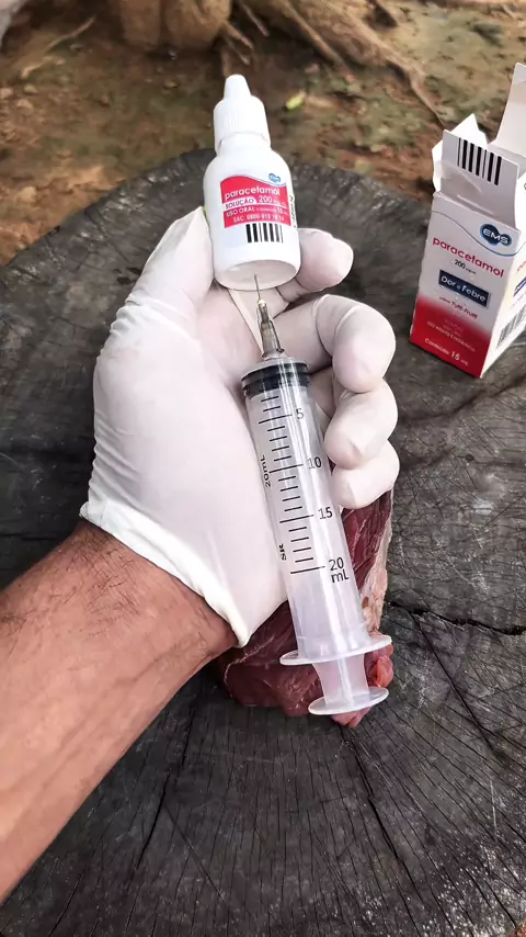 Parte 2 do pedaço de carne que levou várias injeções de paracetamol. #paracentamol #remedio #Saúde #curiosidade #teste