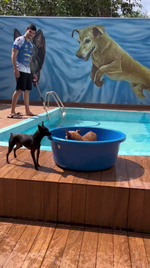 O Capi perdeu o medo da água e agora adora irritar o Jake 😂