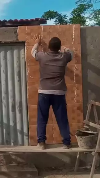cerâmica para muro amadeirado #construçãocivil