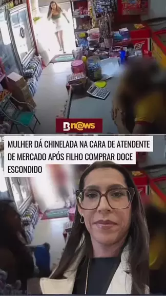Funcionária trabalhando no caixa de um supermercado toma uma chinelada de uma mulher inconformada com uma venda que ela fez a seu filho.