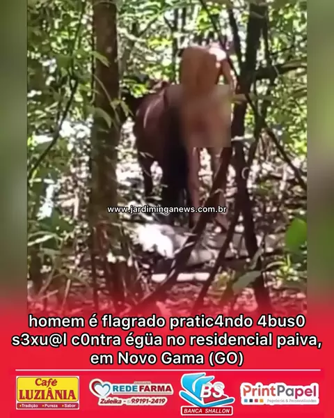 Um caso chocante e perturbador causou revolta entre moradores do bairro Residencial Paiva, em Novo Gama, no Entorno do Distrito Federal. Um homem foi flagrado praticando abus0 sexu4l contra uma égua em uma área de mata da região. As imagens, registradas por moradores, mostram o suspeito completamente nu atrás do animal, em um at0 de natureza sexu4l. O episódio rapidamente gerou indignação nas redes sociais, sendo classificado pela população como um grave caso de maus-trat0s e crim3 ambient4l.