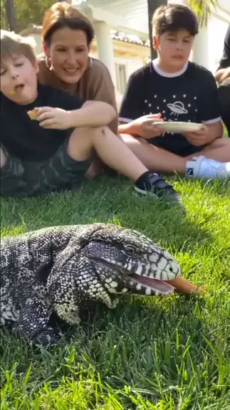 Squash the tegu loves hot dogs 🌭 only as a treat of course #lizard #animal #tegu #hotdog #thelopezfamily More