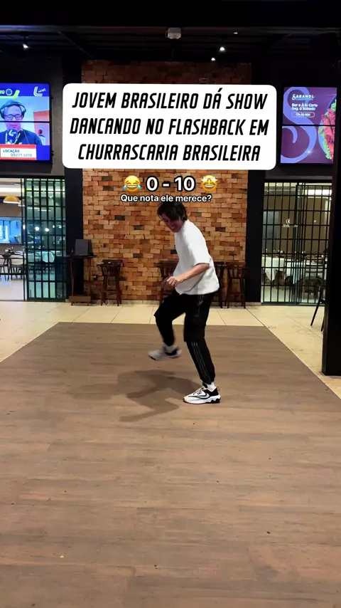 Jovem brasileiro dá show dançando FLASHBACK em churrascaria brasileira 🇧🇷