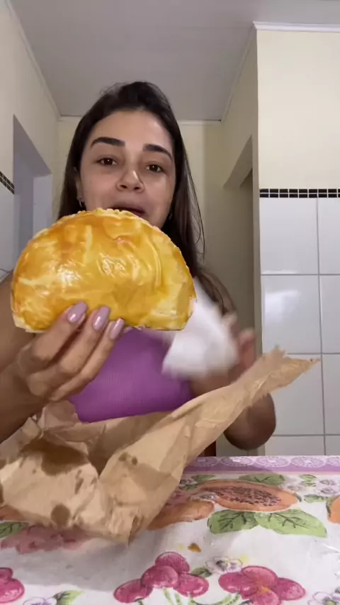 Salgado de conveniência gigante #salgado #frito #comendo #enrroladinho