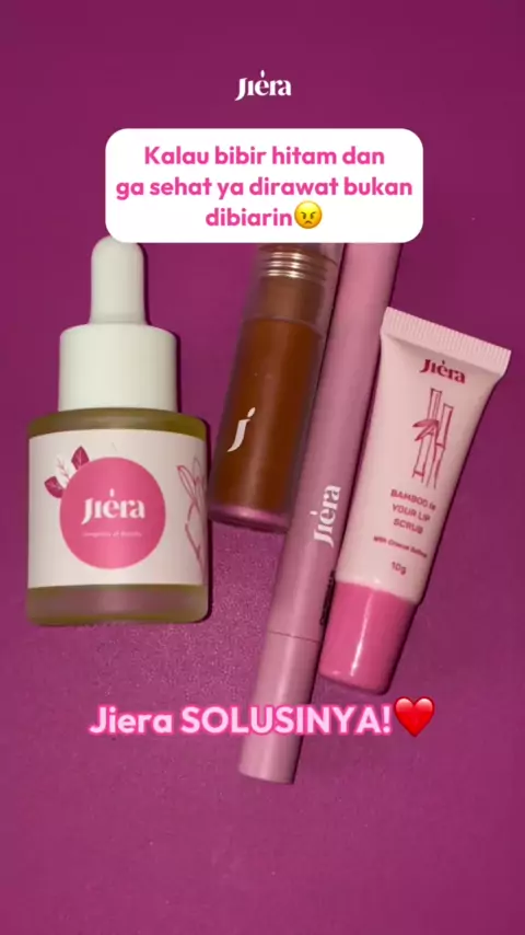 Kalau kamu punya permasalahan bibir seperti di video, Jiera solusinya! Bisa membantu mencerahkan dan menyehatkan bibir kamu💖 #banggaproduklokal #jieraofficial #jiera #jieralippeptint #jieralipserum #jierascrub #jieralipserum