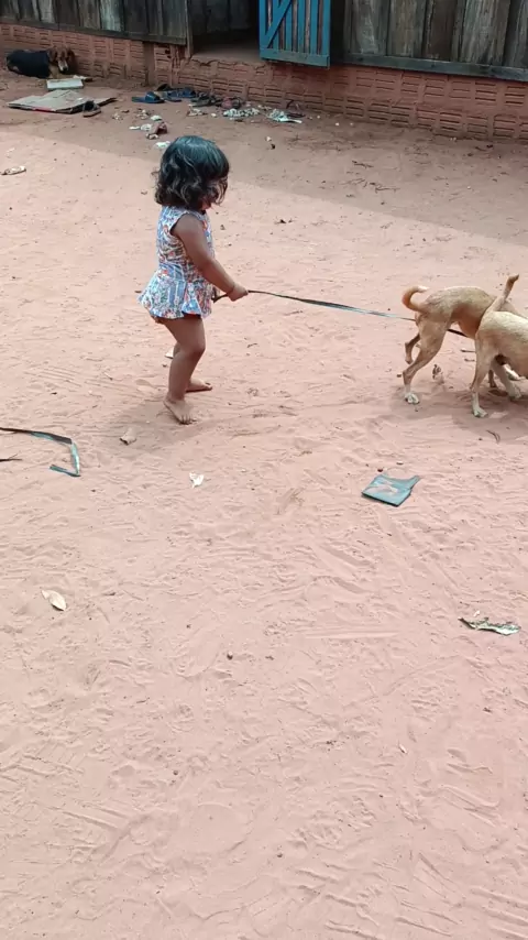 Minha sobrinha brincando com cachorrinho dela
