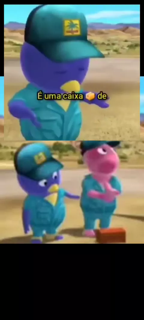 Os personagens na imagem são Pablo (o pinguim azul) e Uniqua (a criatura rosa) O nome do desenho animado é Os #Backyardigans.