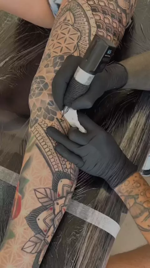 Killer little time lapse on this leg project for Ana. Made using @symmetrycartridges @bishoprotary @silverbackink #tattoos #dotworktattoo #dotwork #love #blackwork daily good gram