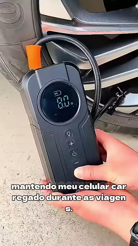 Nunca mais fique na mão: conheça a Bomba de Ar Portátil 4 em 1! #BombaDeArPortátil #PowerBank #AuxiliarDePartida #CalibradorDePneus #Praticidade