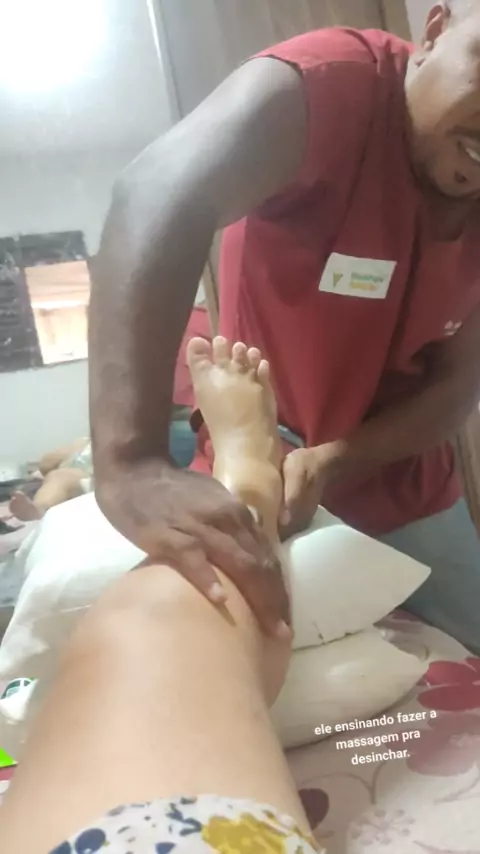 hoje foi dia de mas uma seção de fisioterapia,ele proveito pra em ensinar a fazer a massagem pra desinchar a perna.