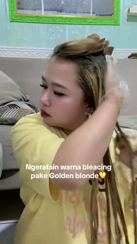 Warna Golden blonde💛#hairtok#haircolouring#catrambutsendiri#catrambut#warnarambut