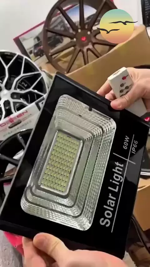 Refletor solar LED! - Iluminação eficiente com 60W de potência - Energia solar renovável e sustentável - Prova d'água e resistente às intempéries - Ideal para áreas externas, como jardins, ruas ou estacionamentos #RefletorSolar #LED #Holofote #EnergiaSolar #ProvaDagua